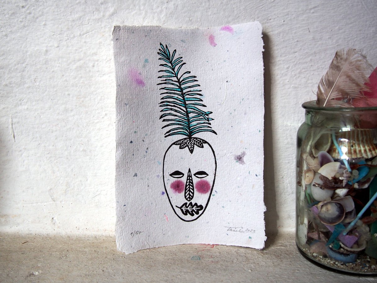 Linoldruck - Palmwedel Maske