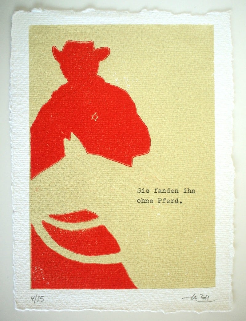 "Sie fanden ihn ohne Pferd" translates into "They found him without his horse". Yeehaw.