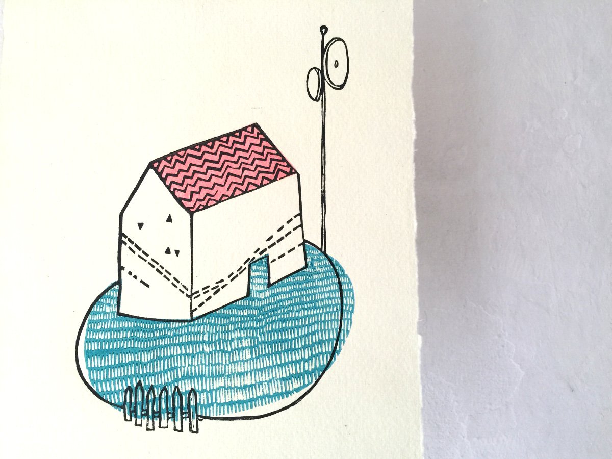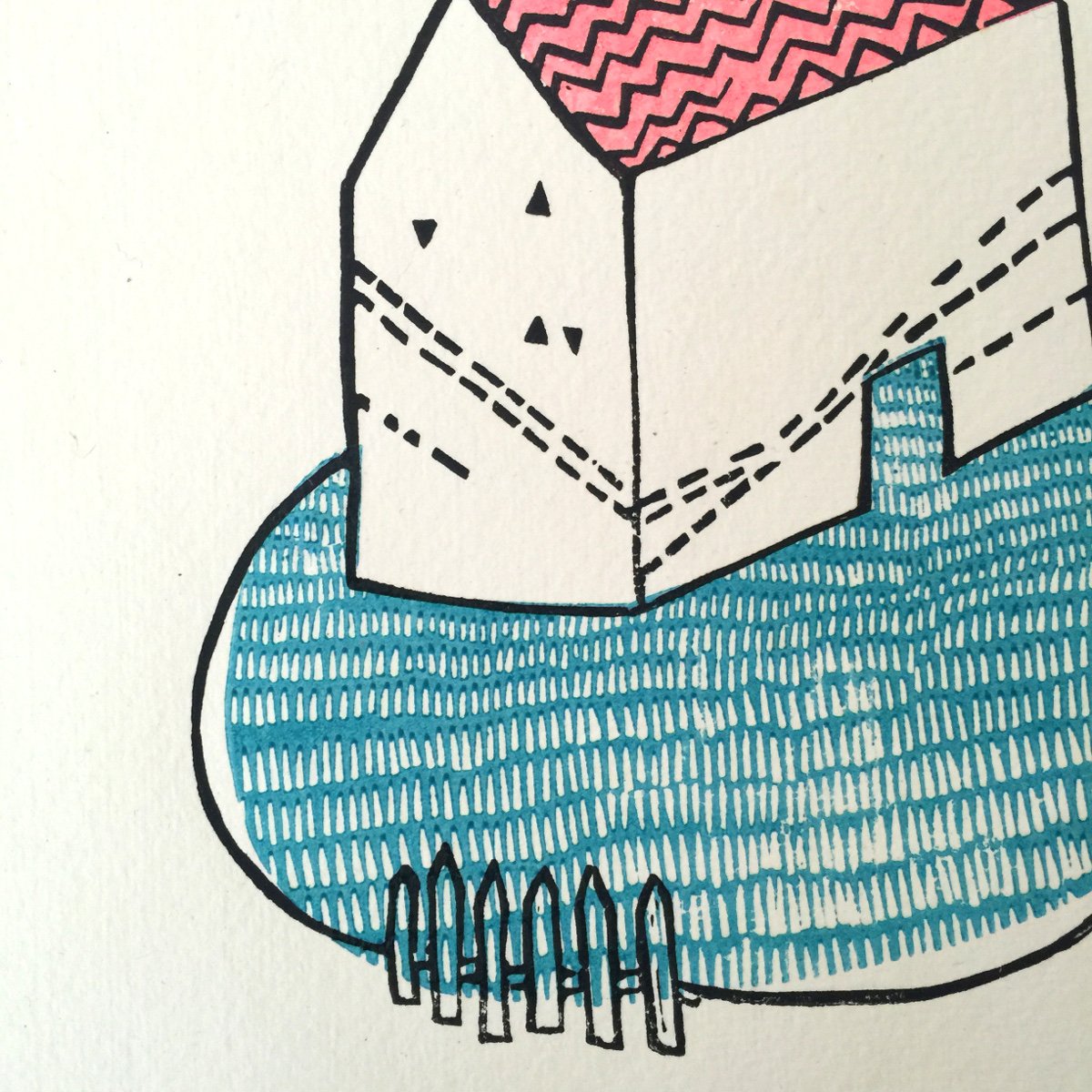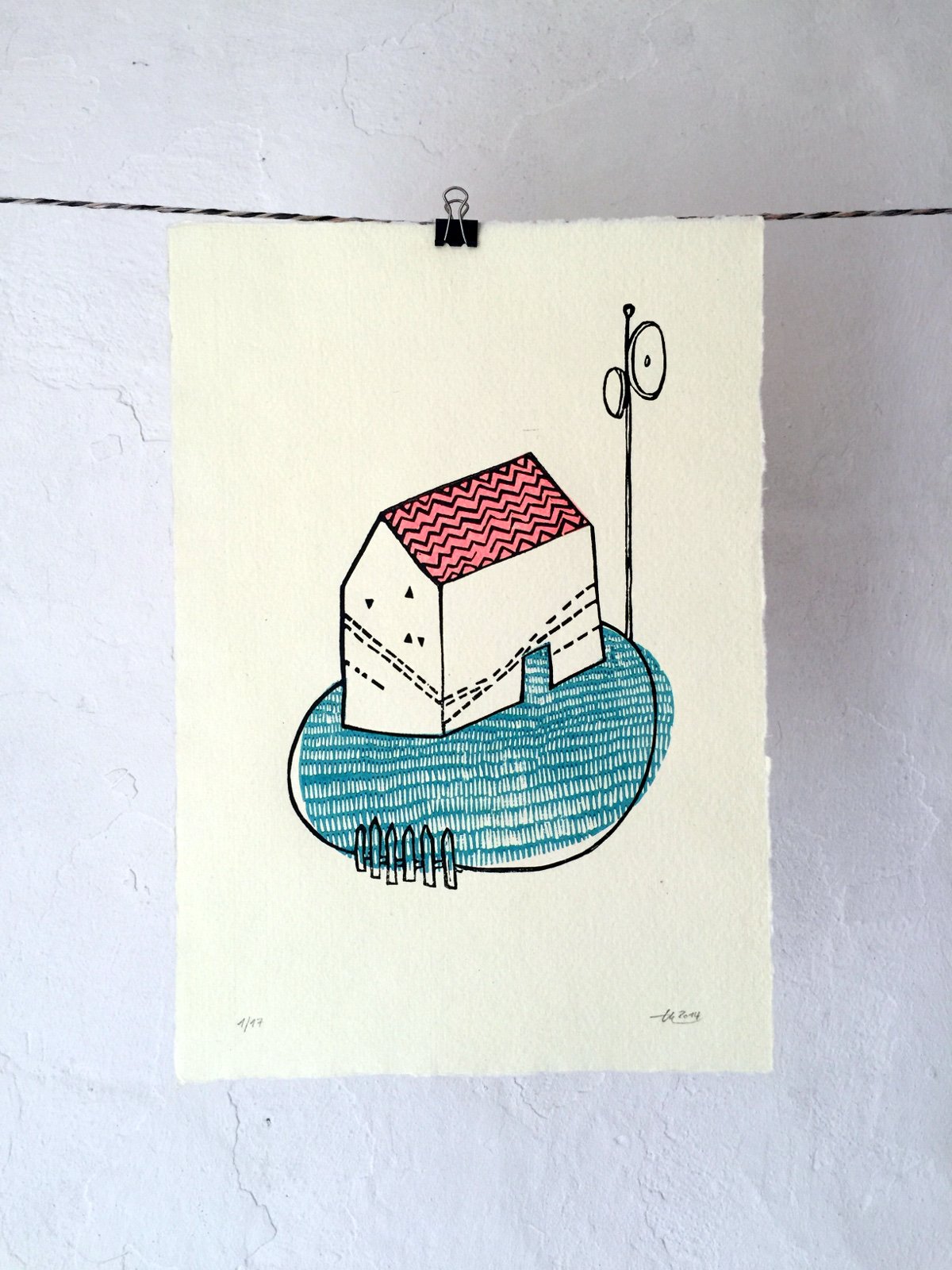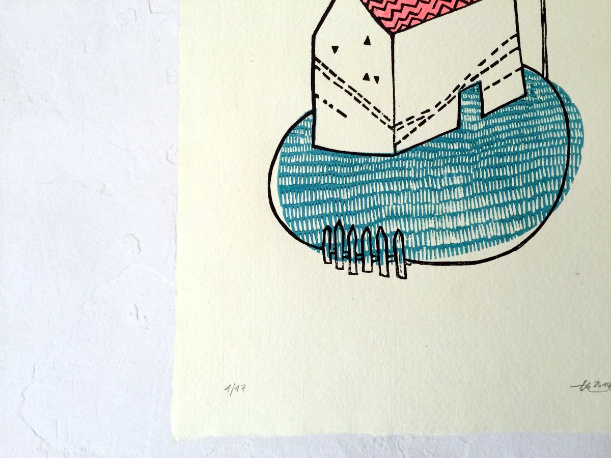 Original Linoldruck mit 3 Druckfarben, 2014.