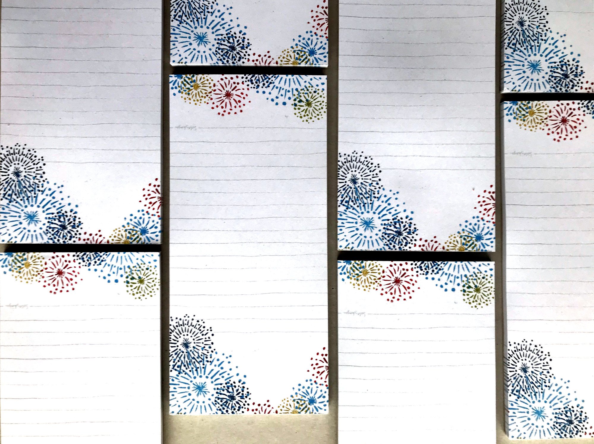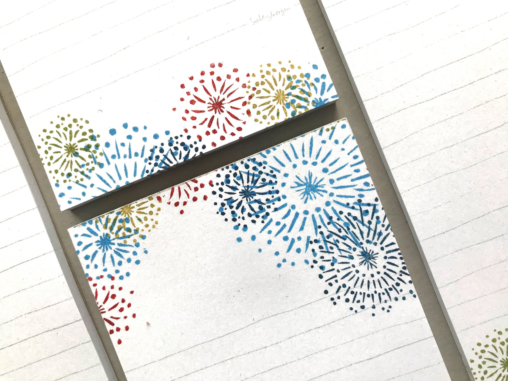 Die Vorlage für diesen Notizblock habe ich mit meinen selbst geschnitzten Stempeln erstellt.