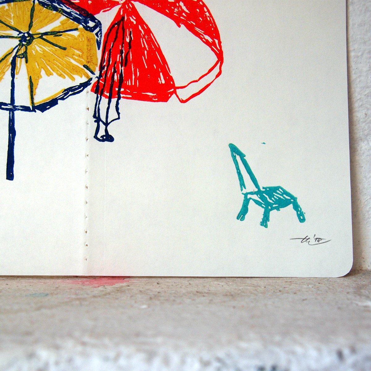Gedruckt auf cremeweiße Skizzenheftseiten..
