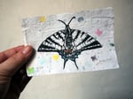 Kleiner Original Stempeldruck auf selbstgeschöpftem Konfettipapier.