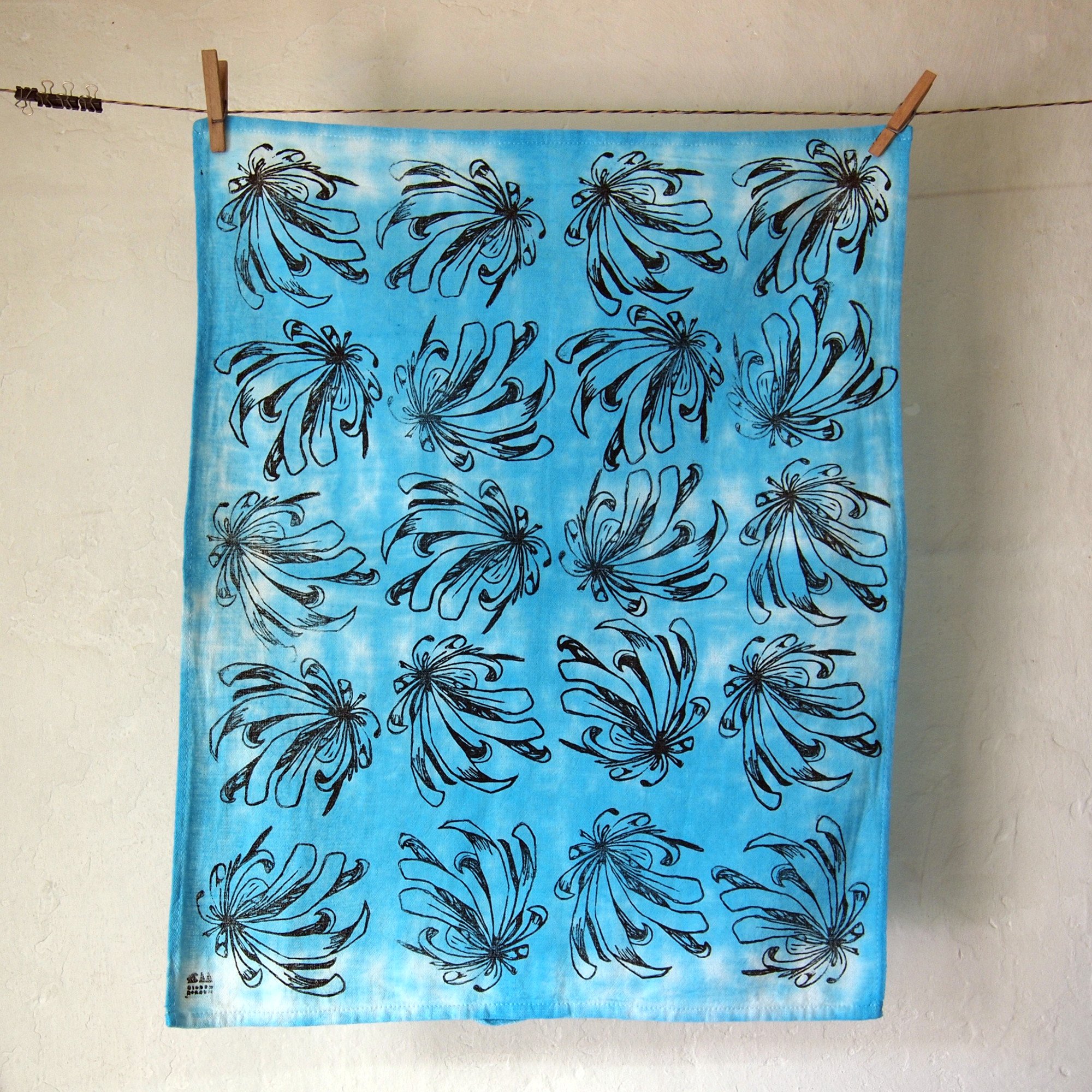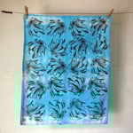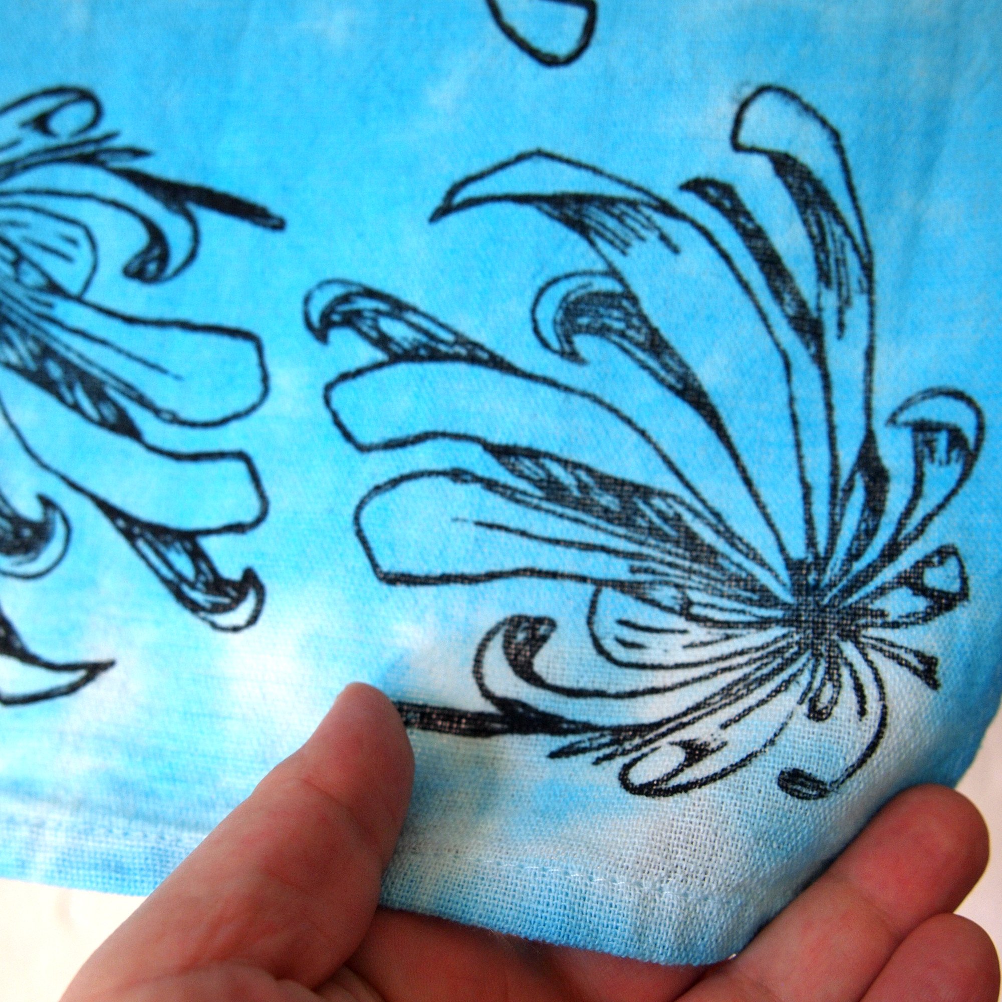 Handdyed and -printed tea towel.